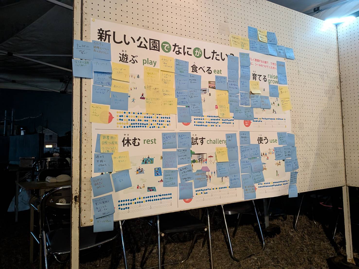 また、オープンハウスを開設し、鷹の台公園の整備と中央公園グラウンドの改修の基本設計内容のパネル展示や「新しい公園でなにがしたい?投票」を実施しました。