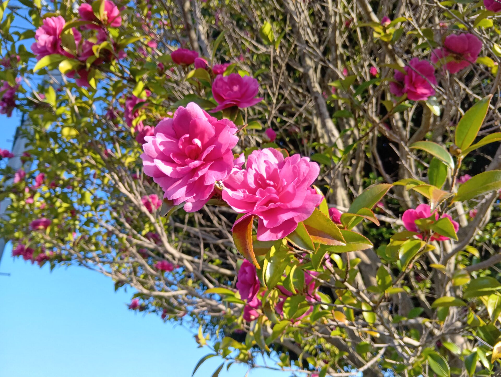 静かな景色の中で、冬ならではの花や果実が鮮やかな彩りを添えています。