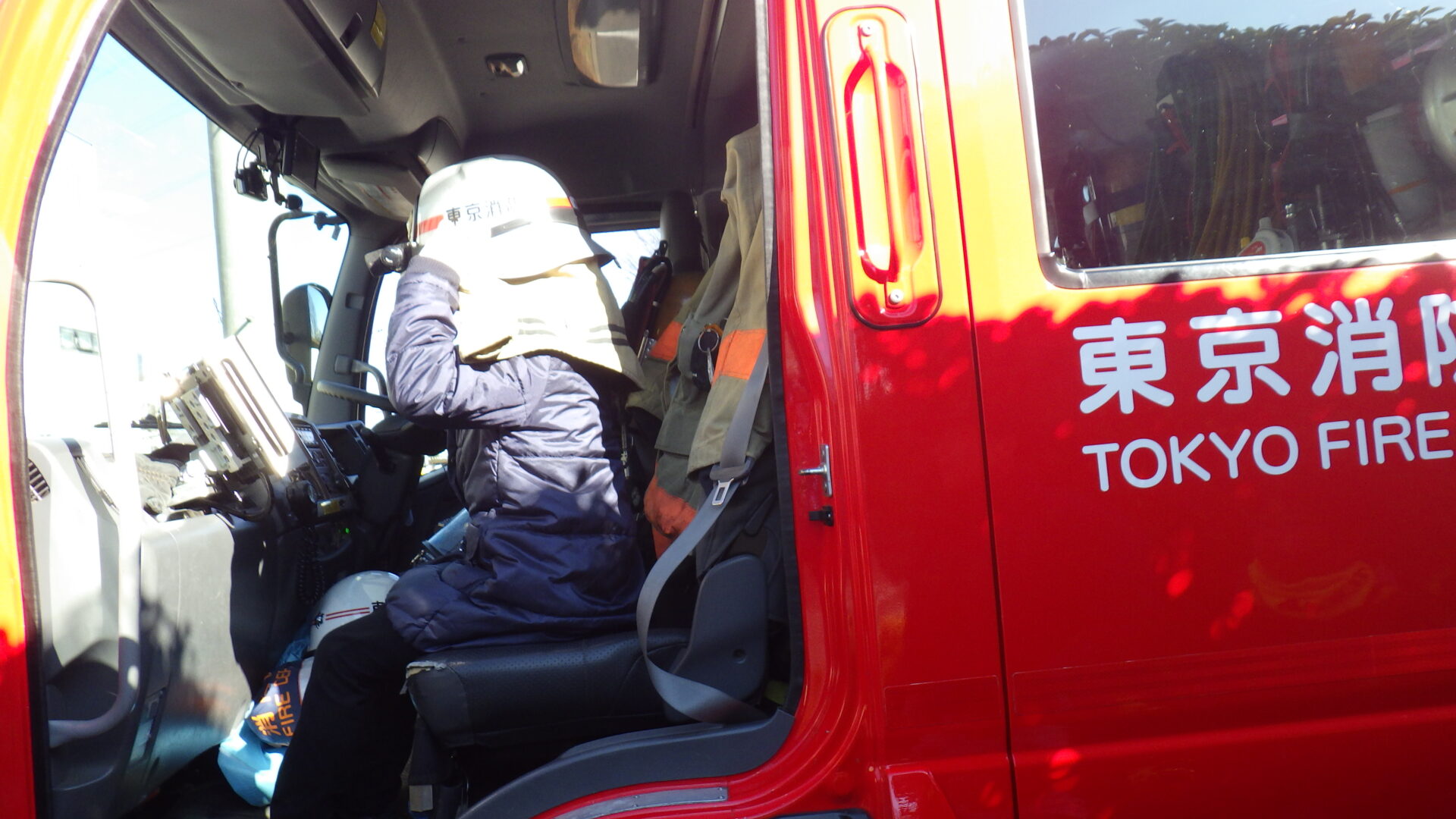 最後に交代で消防車のシートに座らせていただきました。こちらもかなり貴重な経験です。みんな大喜び。