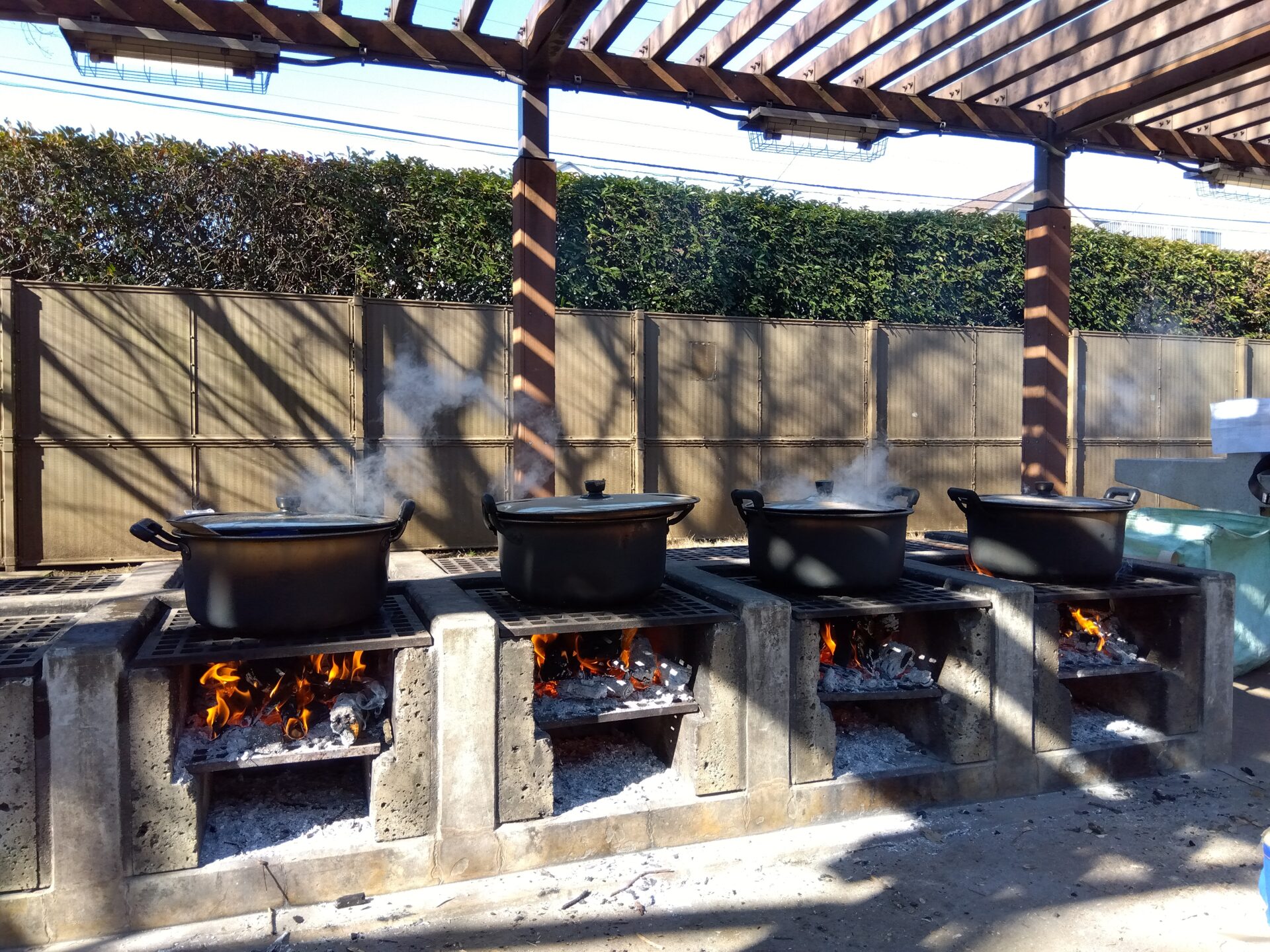 かまどの燃料には、炭のほかに公園の樹木の整備をする際に出る素材も使用。