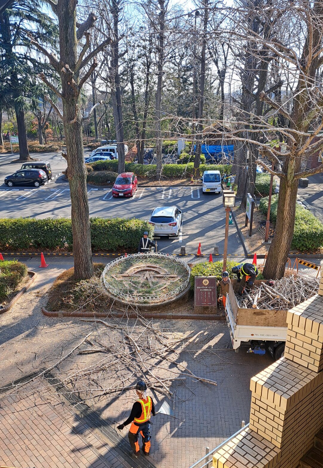 '26.02.20先日、中央公園の第一駐輪場付近のイチョウの剪定作業がありました。
