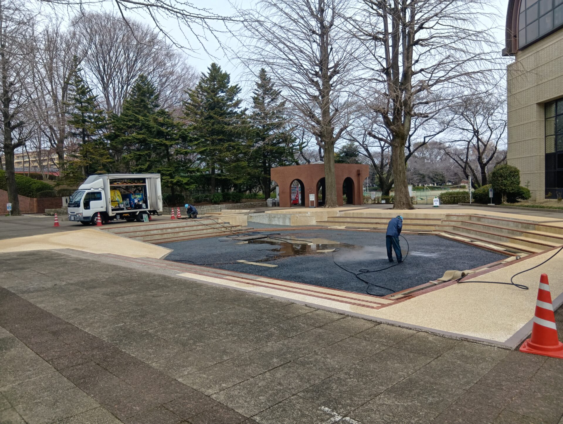 '26.03.15先日、中央公園のじゃぶじゃぶ池の清掃を業者の方にしていただきました。