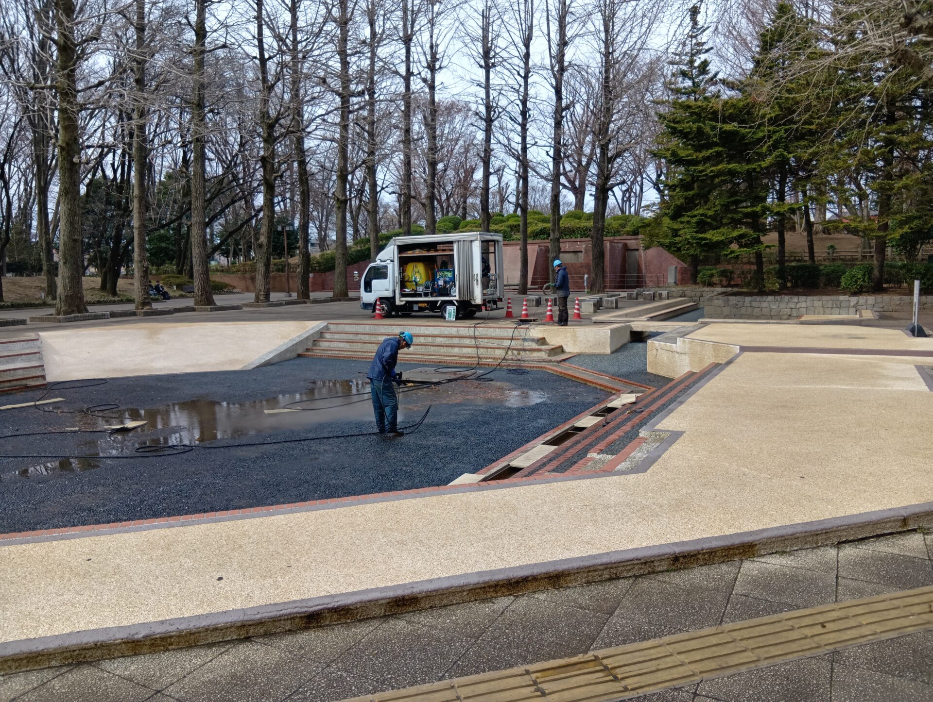 先日、中央公園のじゃぶじゃぶ池の清掃を業者の方にしていただきました。