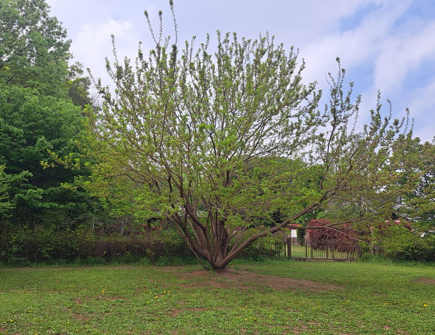 写真は四月中旬の北側エリアです。左側奥に見える木に近づいてみます。