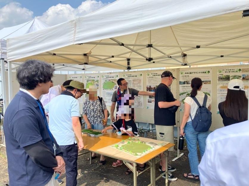 オープンハウスでは、公園整備の事業説明パネル及び模型を展示しながら事業説明を行ったほか、アンケート「新しい公園でなにがしたい?」を実施しました。当日お立ち寄りいただいた皆様、ご協力ありがとうございました。