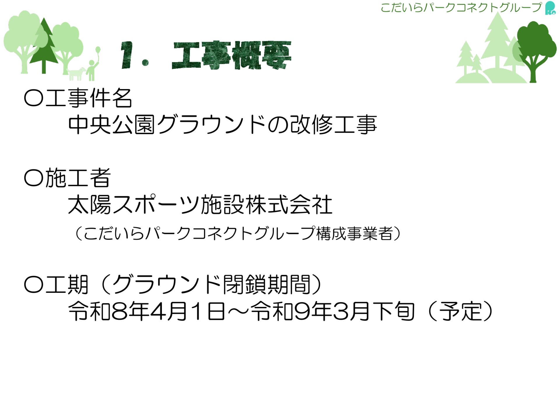 '26.04.05まもなく中央公園グラウンドの改修工事が始まります。