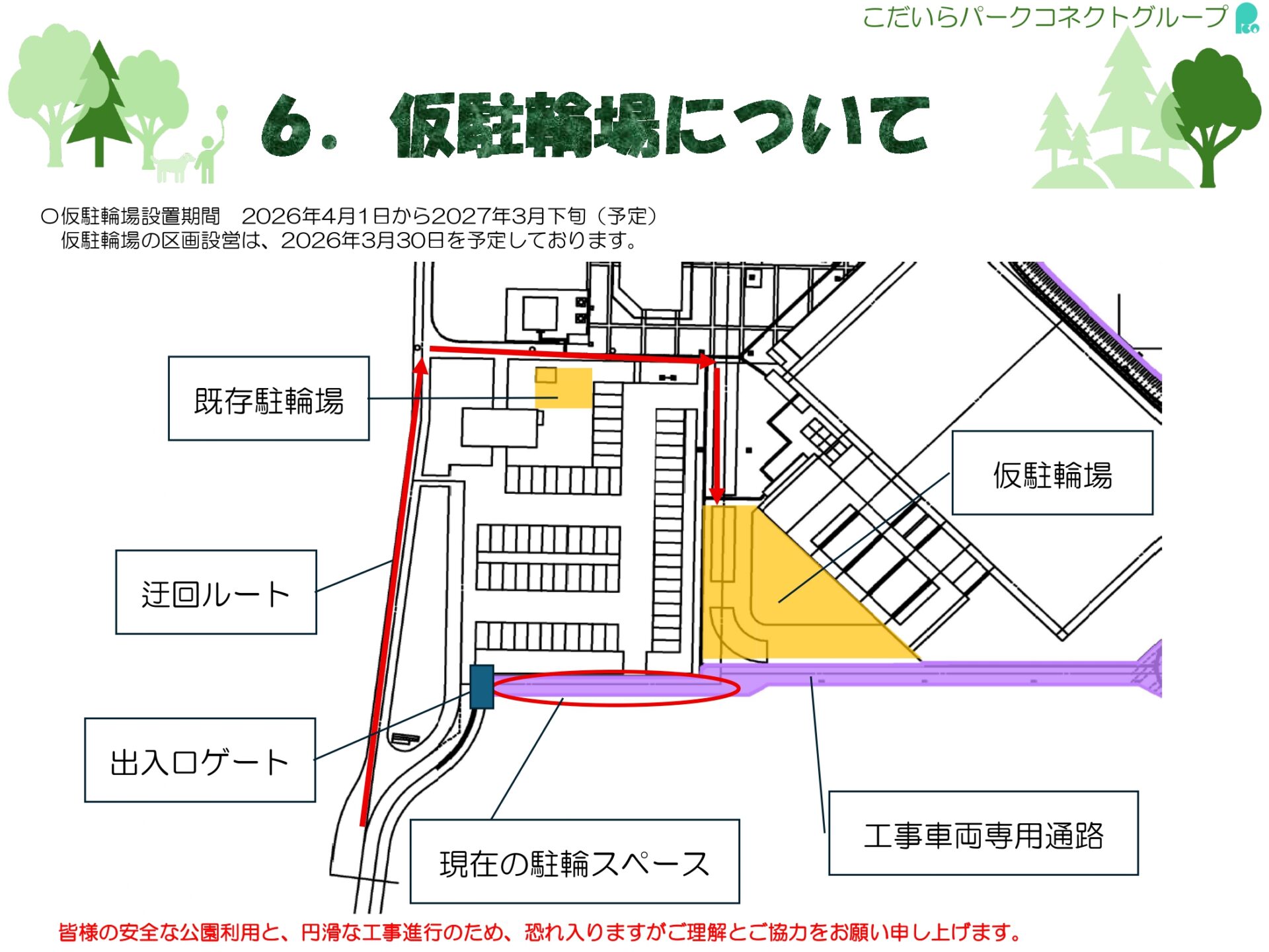 また、中央公園の園路等にも通行の制限がかかります。詳しくは資料をご確認ください。